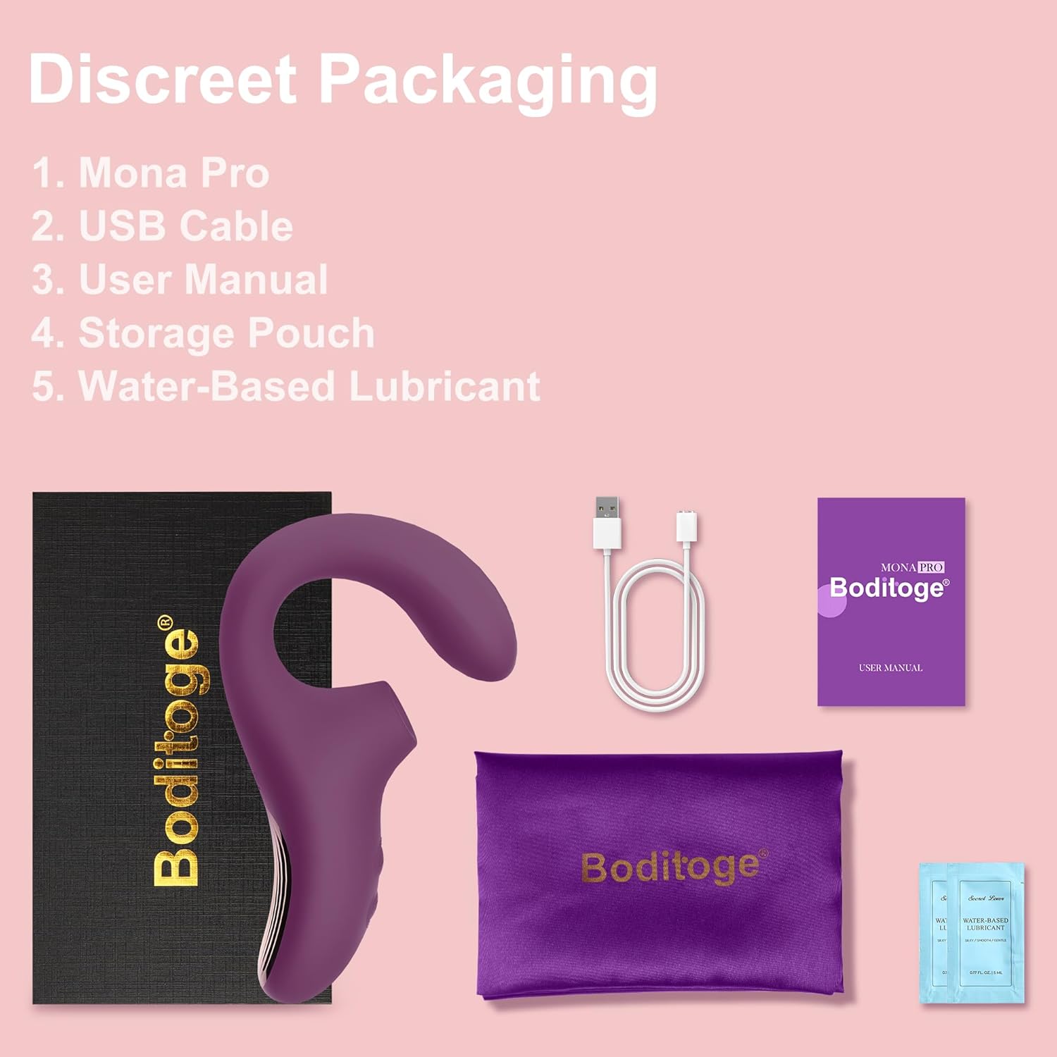 Discover blended pleasure with the Mona Pro Clitoral Sucking G-Spot Vibrator, designed for intense dual stimulation. Featuring 10 powerful suction patterns and 10 vibration modes, it teases your clitoris while massaging your G-spot in perfect sync. Made from body-safe silicone, it’s waterproof, rechargeable, and whisper-quiet — the perfect choice for luxurious, discreet satisfaction.